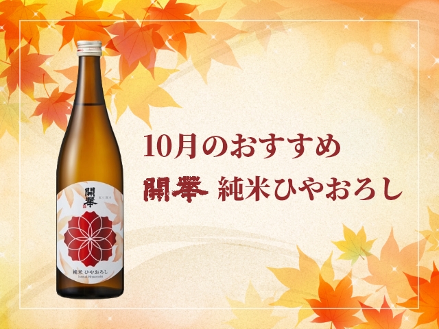 10月のおススメ商品 『開華 純米ひやおろし』 2025/10/1 製品紹介 冬場に仕込んだ純米酒を即瓶詰め、一回火入れ。 そのまま蔵の冷蔵庫でじっくりと、ひと夏瓶熟成した、まさに今飲み頃を迎えた旬の逸品です。 甘やかでふくよかな香り、すっきりとしながらも濃醇な旨味の地酒を、是非、秋の味覚と共にお楽しみください。 内容 純米酒 内容量 720ml、1800ml アルコール分 16度 精米歩合 65% ご購入はこちらから